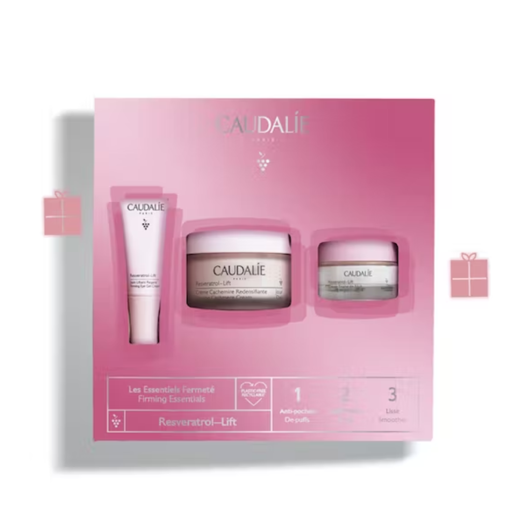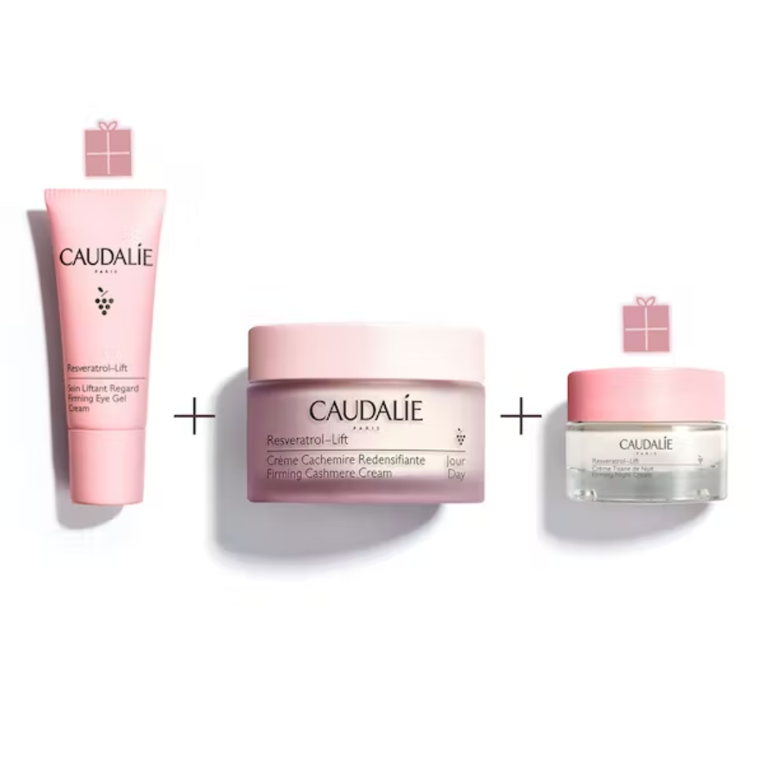 In this limited edition box, find Resveratrol-Lift Redensifying Cashmere Cream 50 mL + 2 complementary products from the same range in travel size offered: