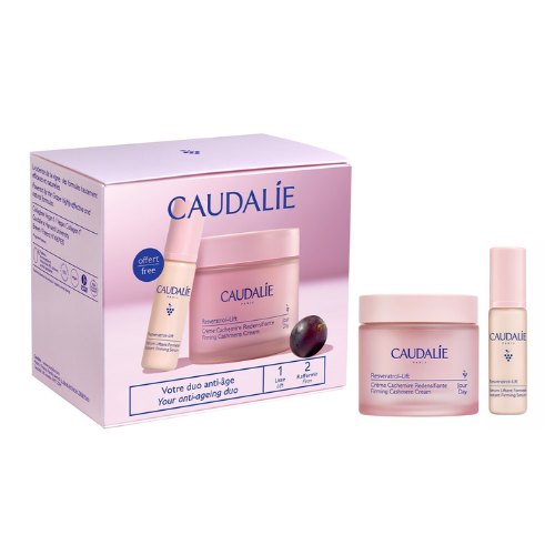 Caudalie Resveratrol Firming Cashmere cream :AQUA/WATER/EAU, COCO-CAPRYLATE/CAPRATE, CAPRYLIC/CAPRIC TRIGLYCERIDE, BUTYLENE GLYCOL, OCTYLDODECYL MYRISTATE, GLYCERIN, BUTYROSPERMUM PARKII (SHEA) BUTTER EXTRACT, CETEARYL ALCOHOL, C12-16 ALCOHOLS, MICROCRYSTALLINE CELLULOSE, VITIS VINIFERA (GRAPE) SEED OIL, PALMITOYL GRAPEVINE SHOOT EXTRACT, CETEARYL GLUCOSIDE, CI 77891 (TITANIUM DIOXIDE), HYDROGENATED LECITHIN, PALMITIC ACID, POTASSIUM CETYL PHOSPHATE, MICA, CAPRYLYL GLYCOL, POLYACRYLATE CROSSPOLYMER-6, BENZYL ALCOHOL, TOCOPHEROL, HELIANTHUS ANNUUS (SUNFLOWER) SEED OIL, XANTHAN GUM, HYDROLYZED HYALURONIC ACID, LECITHIN, ADENOSINE, SODIUM PHYTATE, ACETYL DIPEPTIDE-1 CETYL ESTER, DEHYDROACETIC ACID, SILICA, KHAYA SENEGALENSIS BARK EXTRACT, MALTODEXTRIN, TIN OXIDE, SODIUM HYDROXIDE, PAEONIA LACTIFLORA ROOT EXTRACT, CITRIC ACID, PARFUM (FRAGRANCE), LINALOOL, LIMONENE, COUMARIN*