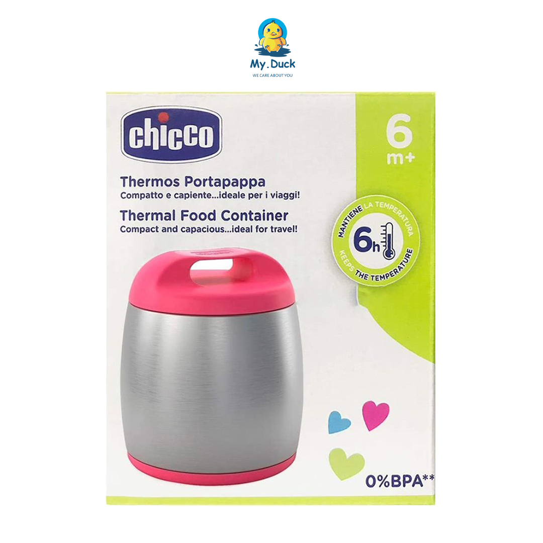 The Chicco food flask is solid and sturdy, made of unbreakable and durable stainless steel.