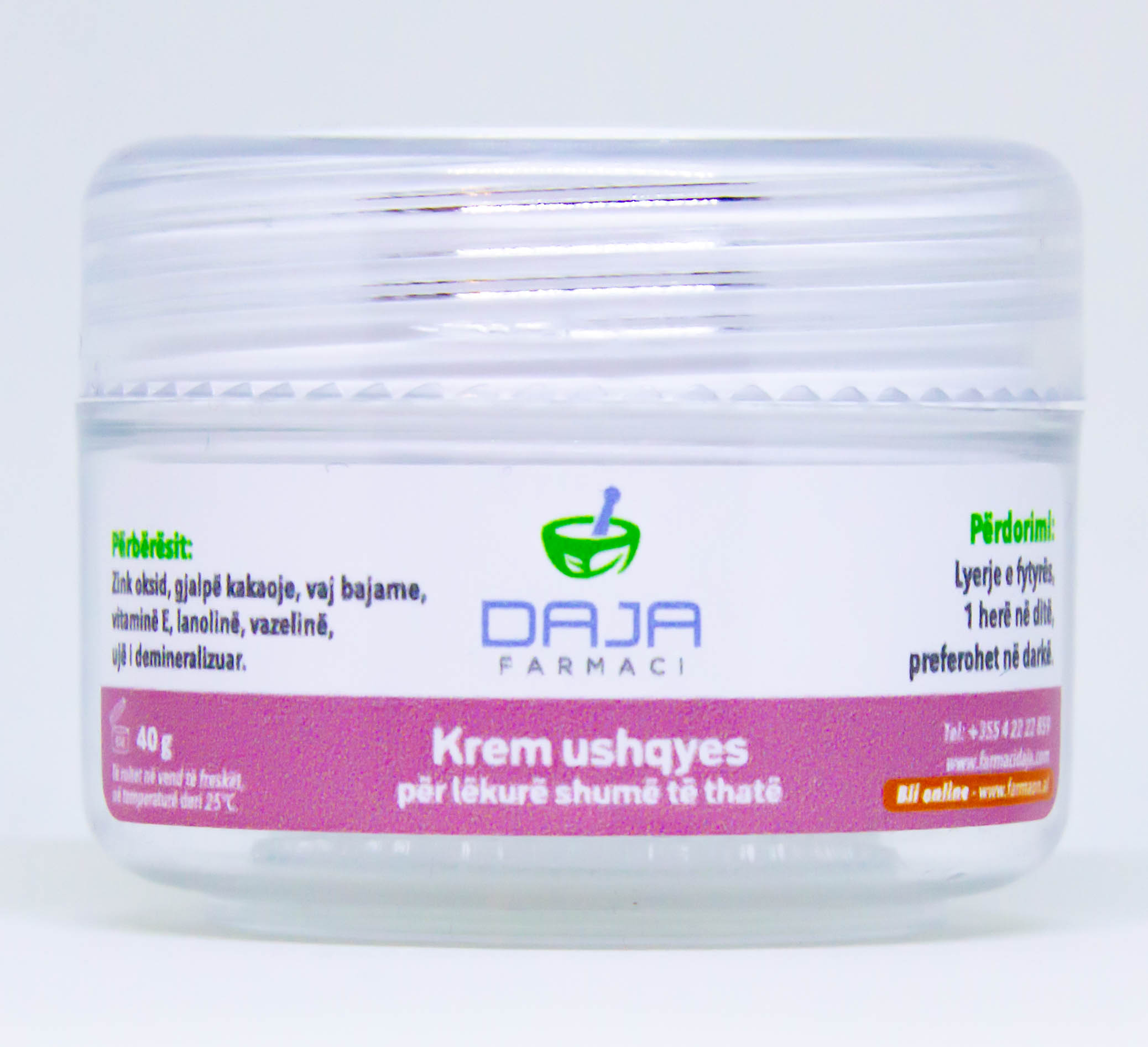 SKU: PG004 Categories: Brands, Cosmetic formulations, Cosmetics, Dry & atopic skin, Face, Farmaci “Daja”, Galenic formulations, Moisturizing & nourishing, Pharmacy Tags: “Daja” Pharmacy, adults, almond oil, cream, dry skin, face, fytyra, galenic preparations, hydrating, lanolin, ushqyes, vaseline, vitamin E, zinc oxide
