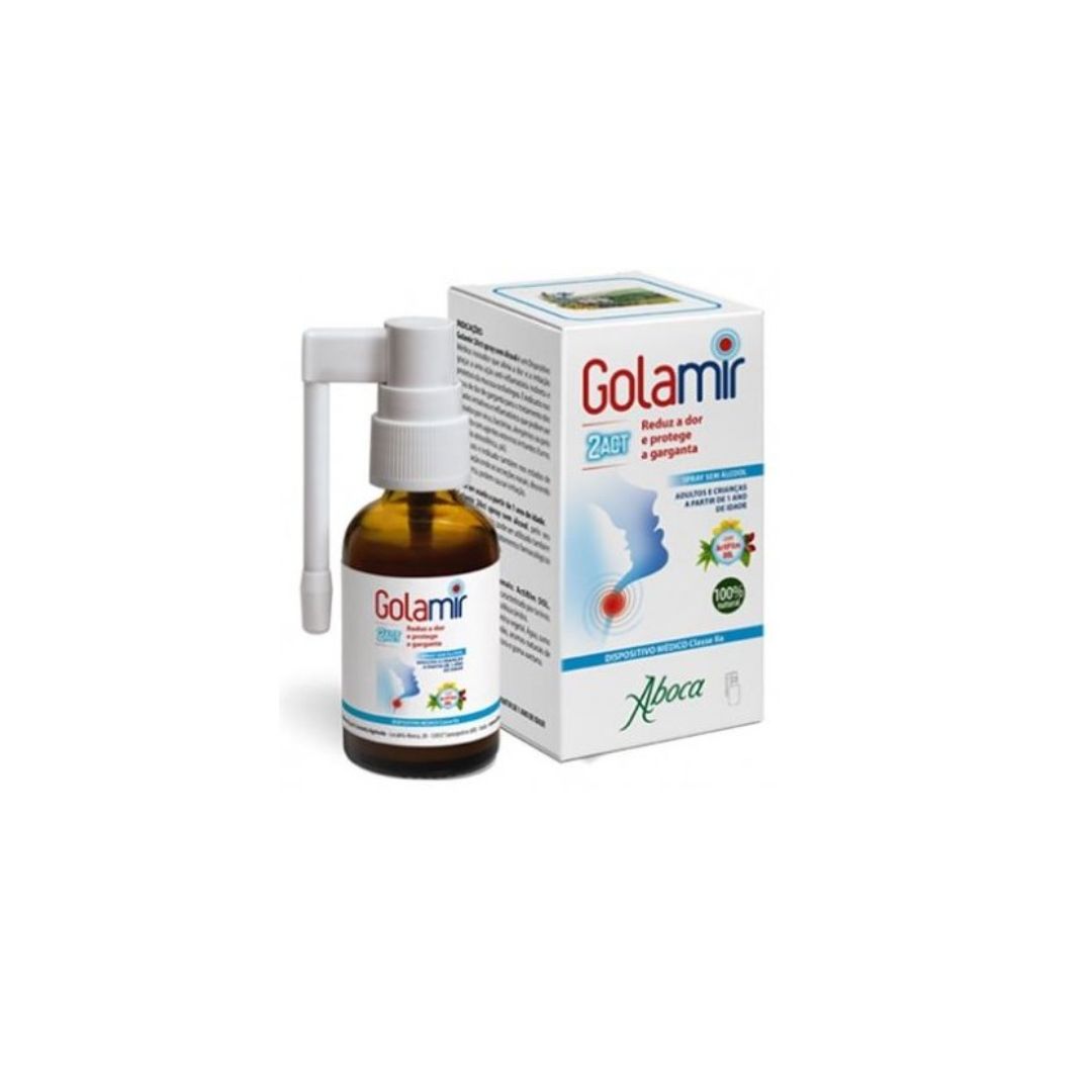 Golamir 2Act alcohol-free spray is indicated in cases of sore throat for the treatment of irritative and inflammatory states of the oropharyngeal cavity, which can be caused by viruses, bacteria, allergens or by contact with irritating external agents (smoke, smog, dust).
