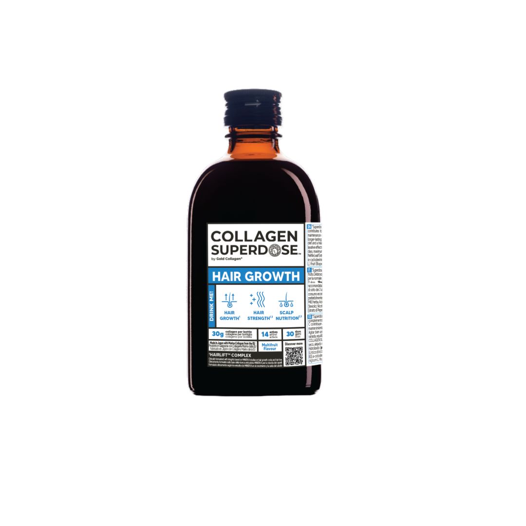 Our tropical fruit-flavoured blend is packed with marine collagen, hydrolysed keratin, rocket and nettle extract, L-Arginine, vitamins and minerals to nourish your hair from the inside out. Just 1-2 spoonfuls per day – taken straight or mixed with water or juice – provides all the essentials to: