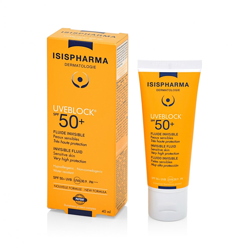 Uveblock SPF 50+ Fluide effectively protects sensitive skin from the sun thanks to its patented SUNSTRESS PROTECT complex.