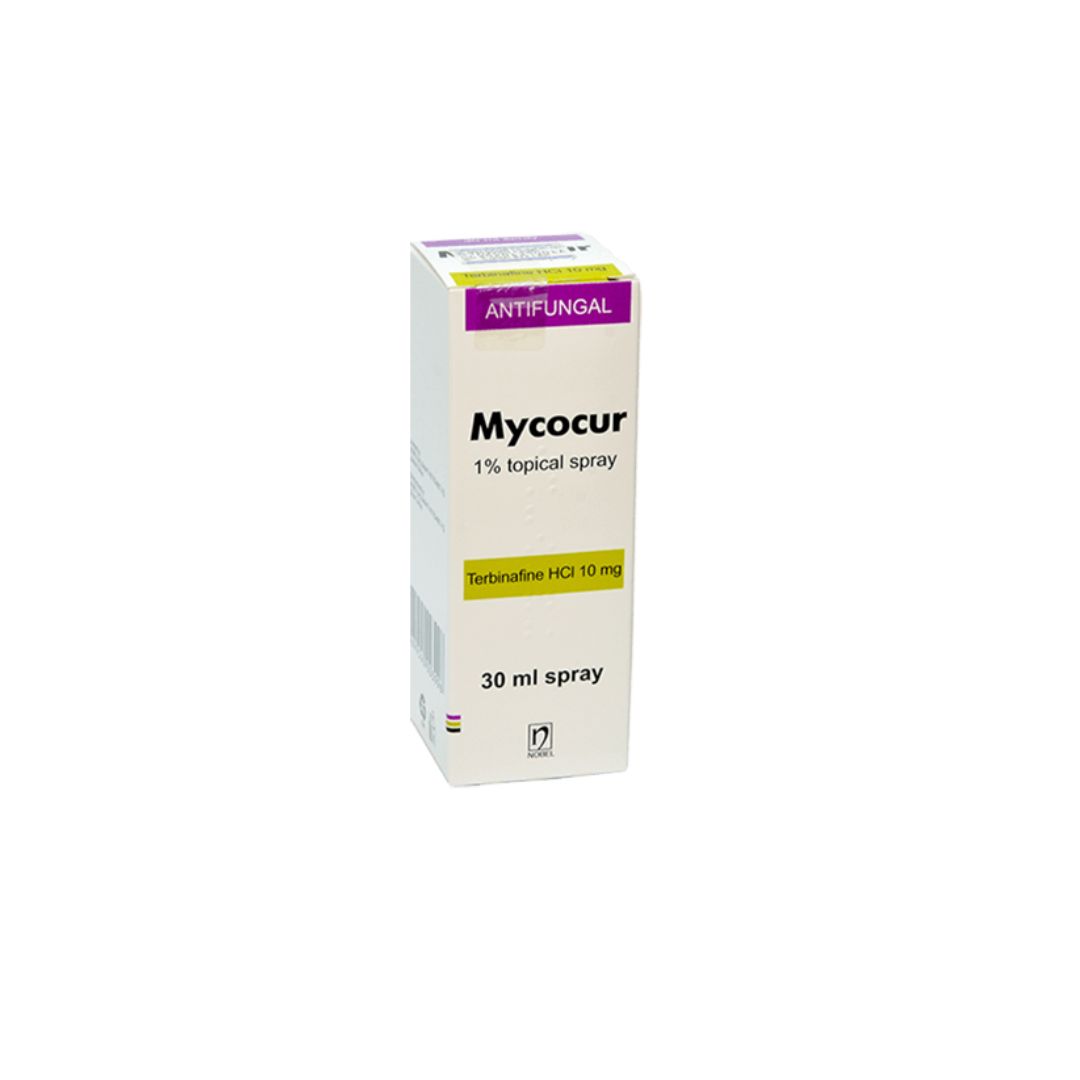 Mycocur Spray përmban klorhidrat terbinafine, me veprim anti-mykotik.
