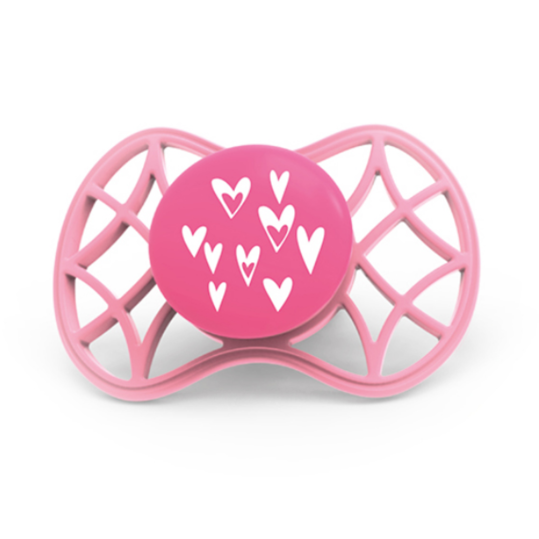 The thin shape at the base supports the natural closure of the mouth ensuring the correct positioning of the tongue and the natural development of the palate.