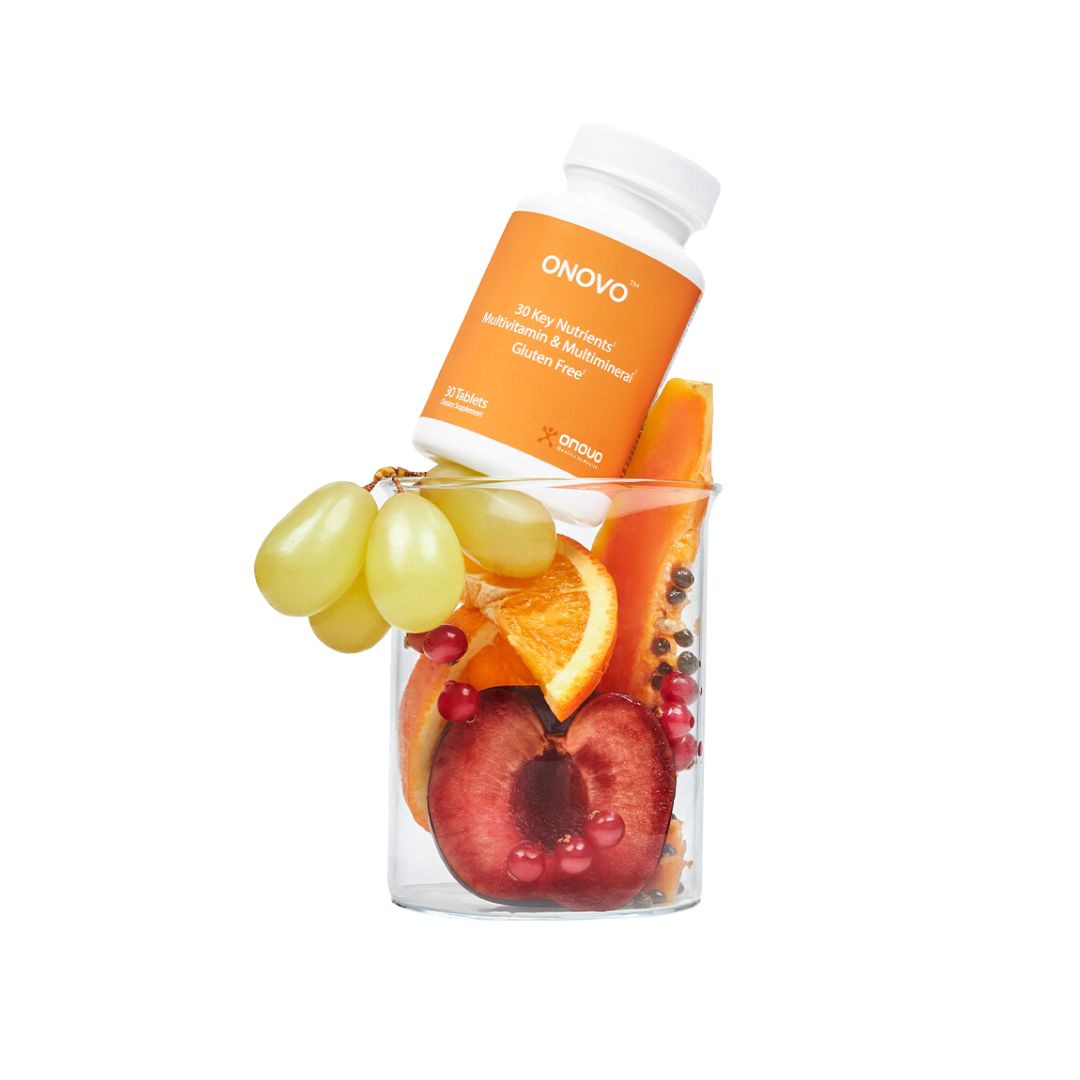 Onovo is a multivitamin and multimineral supplement, a uniquely balanced formula that contains 30 essential macronutrients for a healthier and more active life.It supports energy production, boosts your immunity health, improves your metabolism, and helps fill nutritional gaps for whole body health.In order for your body to grow, develop and function properly it needs all kinds of nutrients. This formula is ideal for everybody who wants to improve their lifestyle.– Complex of B-Vitamins and iron help maintain daily energy needs and overall health.– Antioxidants such as Vitamin C, E, Beta-Carotene and Zinc help support normal immune function and remove potentially damaging oxidizing agents in living organisms.– Minerals like Calcium, Iron, Phosphorus, Magnesium, etc. help your body to function properly and stay healthy and each comes with its own specific role, from blood production to strengthening bones and teeth.