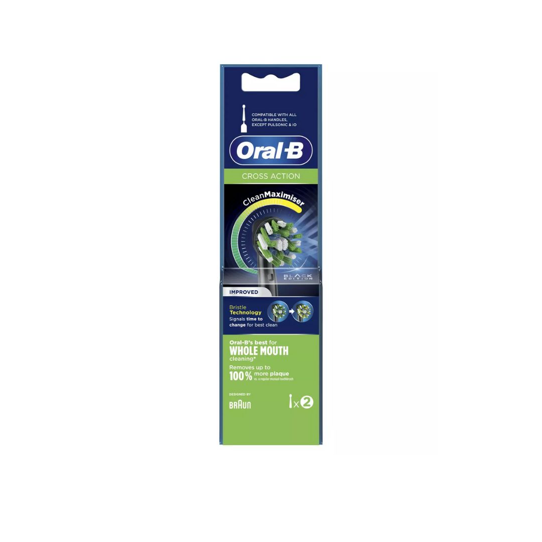The Oral-B Cross Action brush head removes up to 100% more plaque for cleaner teeth & healthier gums compared to a manual toothbrush.