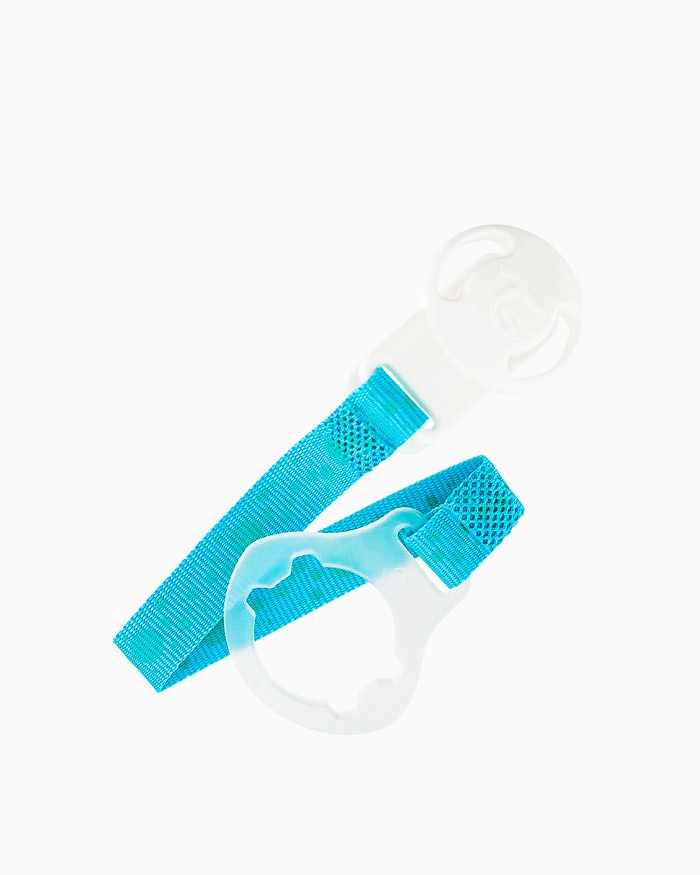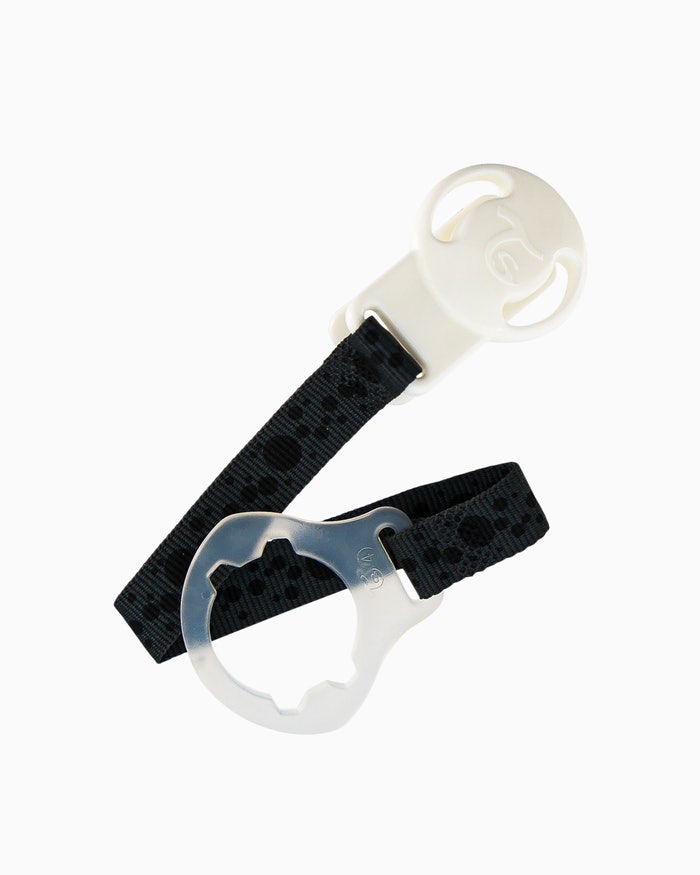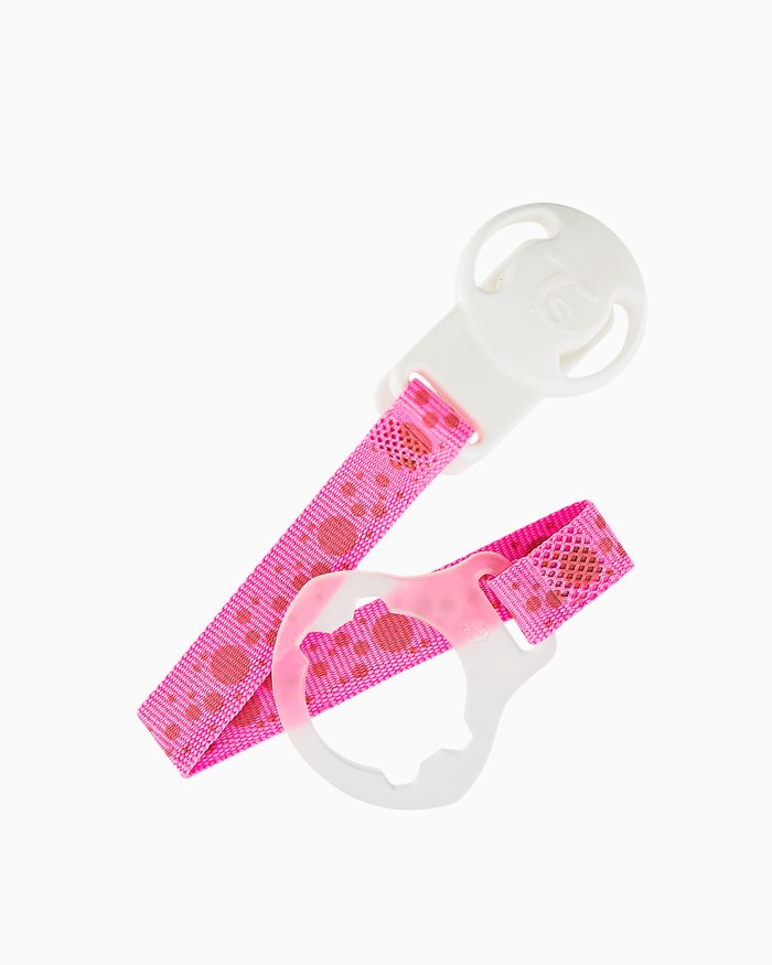 Practical pacifier clip that keeps your baby’s pacifier secure, with a textile strap and a clip.