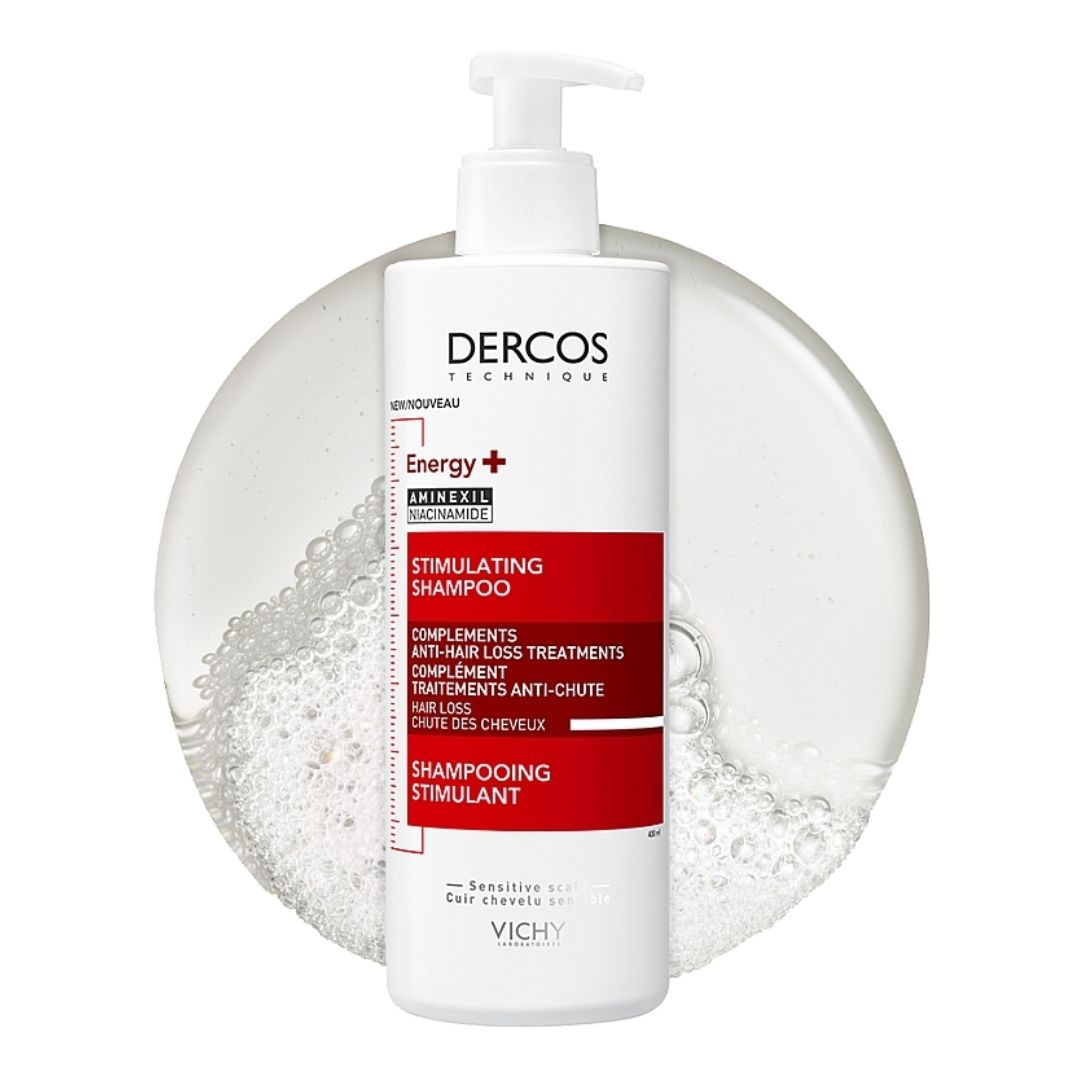 Vichy Dercos Energy+ Stimulating Shampoo is specially formulated to help brake the hairloss problems thanks to its anti-hair loss complex, Aminexil + Vitamins PP, B5, B6.