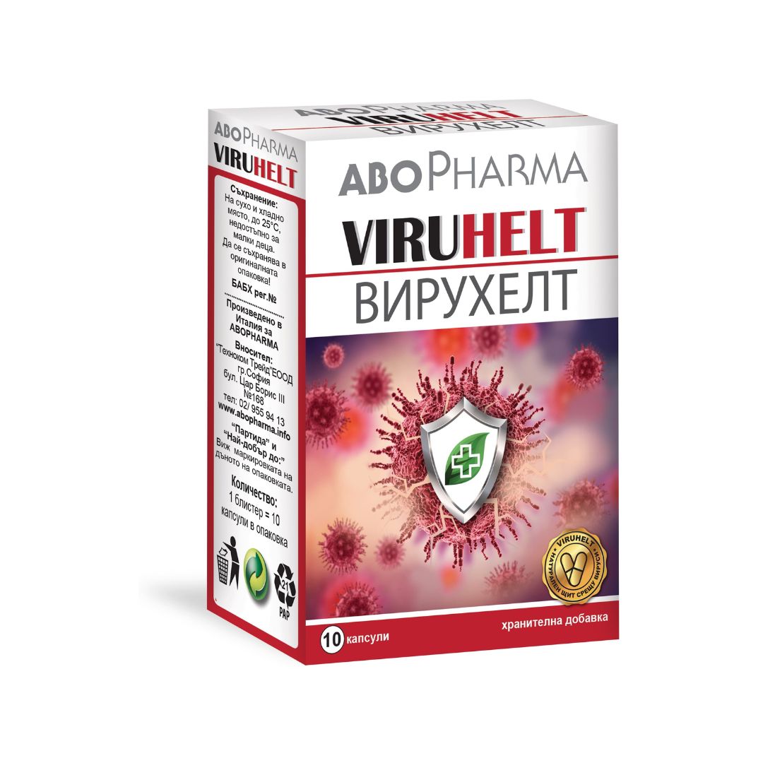 Suplementi ushqimor Viruhelt kombinon një kompleks të veçantë të laktoferrinës me ekstrakte bimore me qëllim parandalimin e gripit dhe gjendjeve virale.Parandalon riprodhimin e viruseve dhe baktereve që në fillim të infeksionit. Gjithashtu redukton kohëzgjatjen dhe ashpërsinë e gripit.Viruhelt nga Abo Pharma rrit imunitetin dhe rekomandohet për përdorim te personat me rrezik të shtuar për t’u prekur nga gripi.Laktoferrina shfaq aktivitet antiviral kundër viruseve të tipit A, tipit B dhe SARS-CoV-2.Formulimi përmban rrënjën e pelargoniumit afrikan, me efekte anti-virale dhe anti-bakteriale.Ekstrakti i rrënjës së luleradhiqes ka një efekt imuno-protektiv dhe antioksidant, dhe andographis lehtëson simptomat e gripit. Në të njëjtën kohë, rrënja e artë ka edhe një efekt antioksidant dhe vepron si një tonik, duke rritur energjinë.Suplementet ushqimorë nuk zëvëndësojnë dietën ushqimore.Të mbahet larg fëmijëve.Mos e merrni gjatë shtatzënisë.