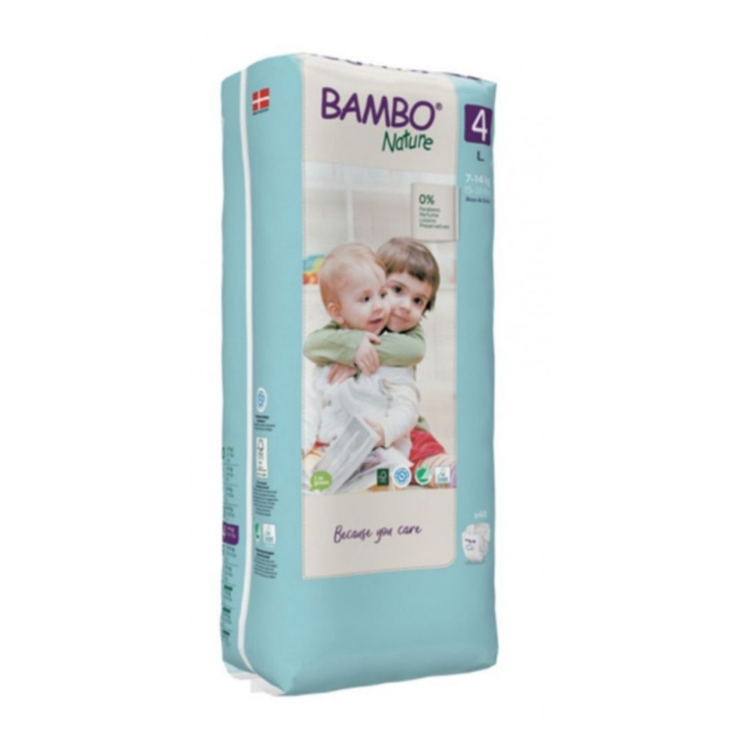 Bambo Nature është Gjenerata e Re e Pelenave Ekologjike Të testuara dermatologjikisht dhe të certifikuara nga instituti rigoroz nordik, EcoLabel, Asthma-Allergy DenmarkBambo nature ka një sistem unik përthithës duke e lënë lëkurën e bebit tuaj të thatë gjatë gjithë kohës.