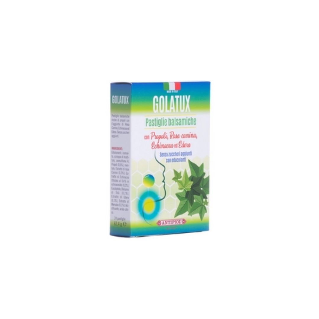 isomalto, sciroppo di maltitolo, acesulfame K, propoli, mentolo, estratto di rosa canina, estratto di echinacea, eucalippto, balsamodi tolu, estratto di edera, estratto di marrubio, acido citrico