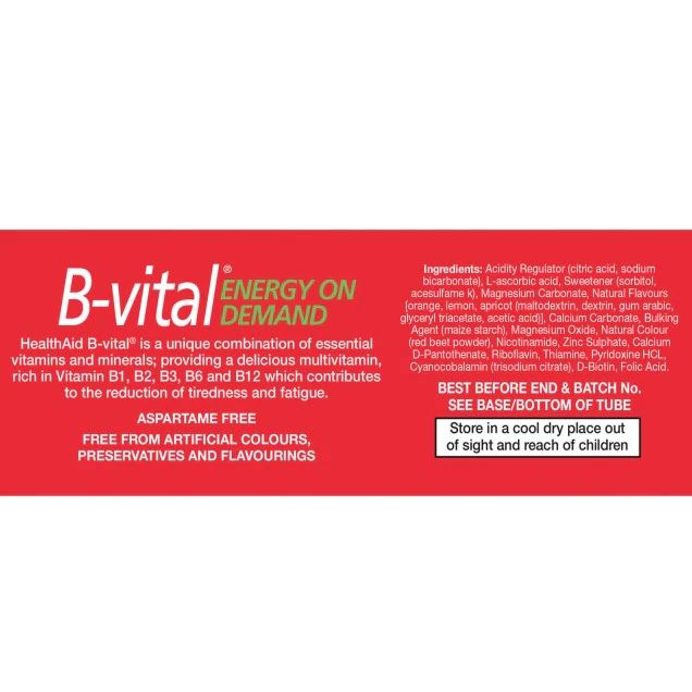 HealthAid B-Vital është një kombinim unik i vitaminave dhe mineraleve thelbësore, i cili kontribuon në reduktimin e lodhjes.
