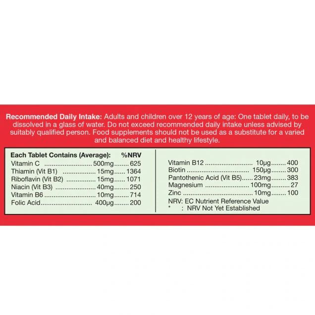Formulim i plotësuar me vitaminat B1, B2, B3, B6 dhe B12 i cili kontribuon në reduktimin e lodhjes.