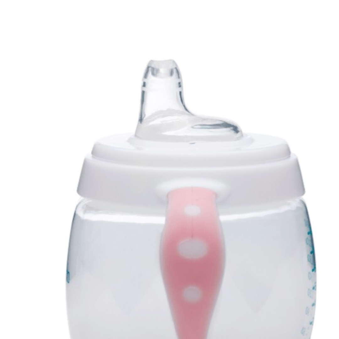 Gota ka doreza anësore të rehatshme për kapje dhe gryka e butë kundër rrjedhjes i lejon vogëlushëve të mësojnë më lehtë se si të pijnë në mënyrë të pavarur.