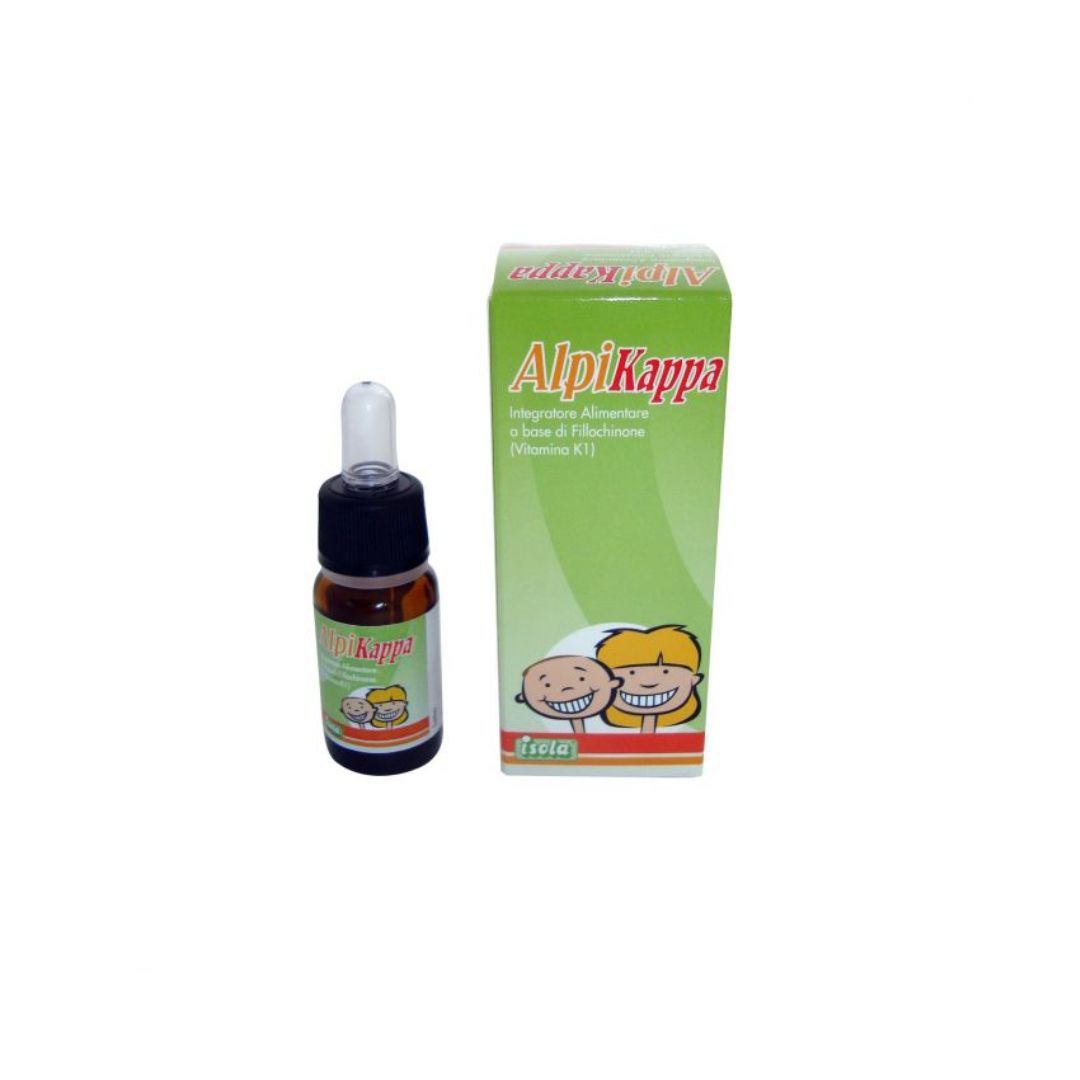 AlpiKappa është një suplement ushqimor me bazë vitaminën K.Përdoret në rastet kur kjo vitaminë nuk gjendet në organizëm në sasinë e nevojshme.Vitamina K merr pjesë në proçesin normal të koagulimit të gjakut dhe në pasjen e kockave të forta.Pa gluten dhe pa laktozë.Suplementet ushqimorë nuk zëvëndësojnë dietën ushqimore.Të mbahet larg fëmijëve.
