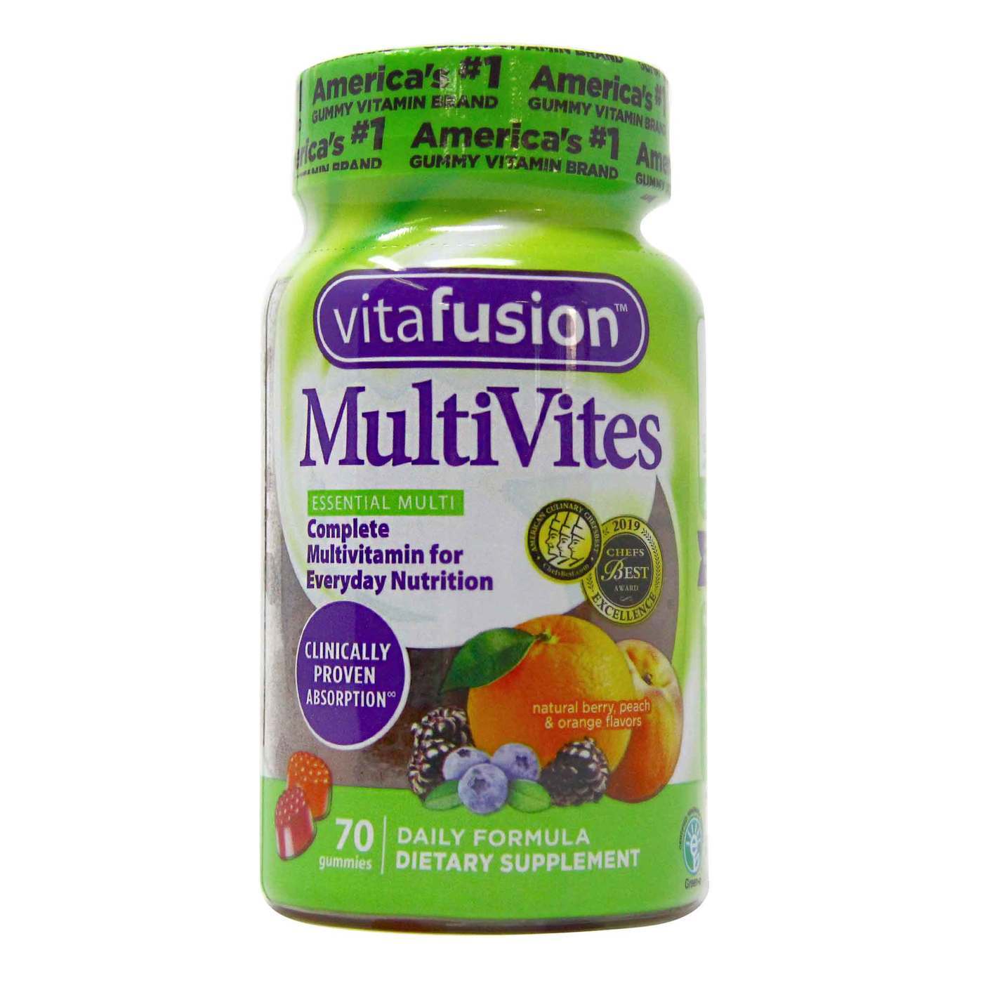 Vitafusion ofron për të rriturit një suplement me vitamina dhe minerale, në formën e arushwve të përtypshëm, me shije portokalli, pjeshke dhe manaferre.